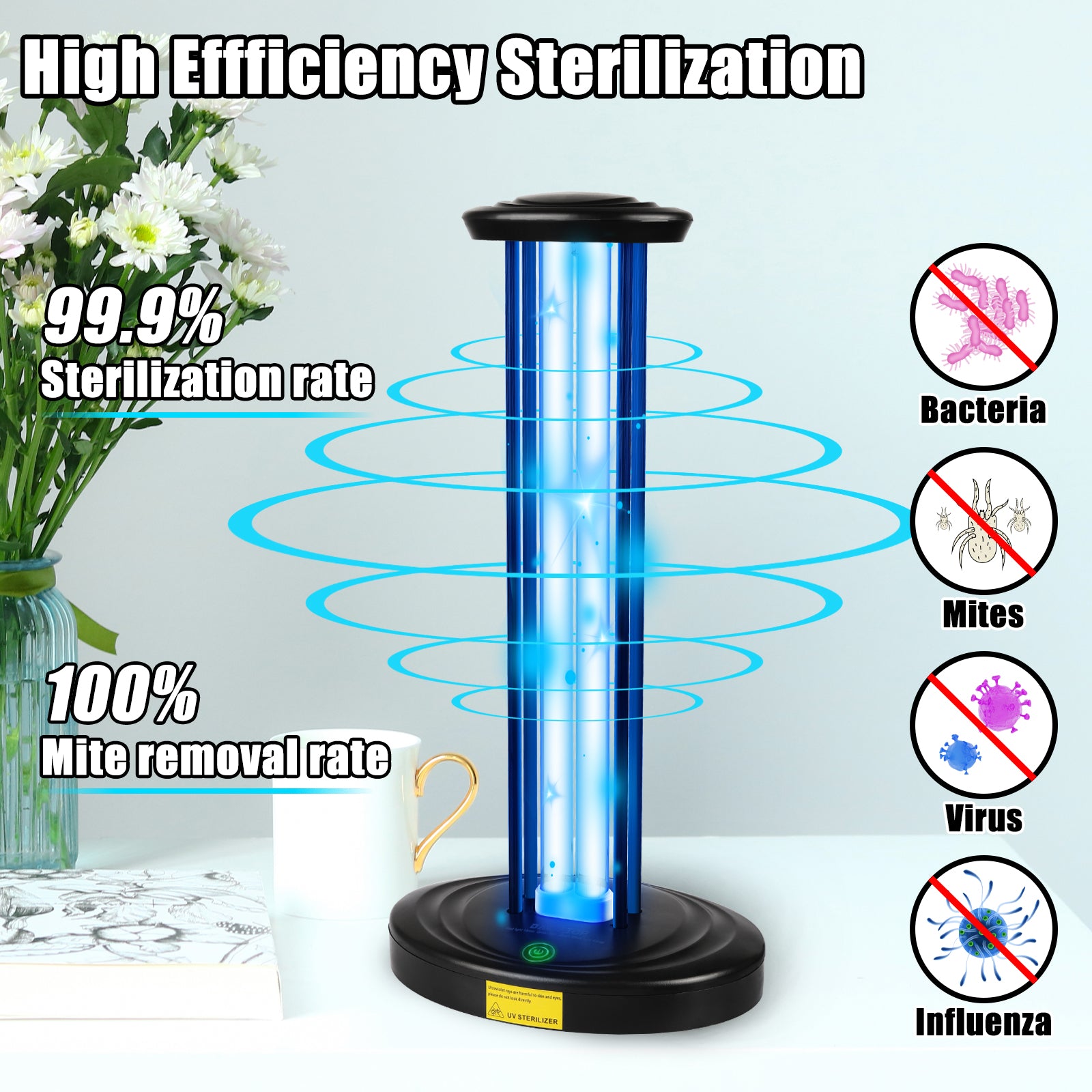 The Dailytop 38W UVC Light Sanitizer combines 254nm ultraviolet rays with 185nm ozone generation for dual-effect sterilization, eliminating 99.99% of bacteria, viruses, mold, dust mites, and bed bugs. Unlike traditional UV lamps, ozone penetrates deep into fabrics and hidden corners for dead-angle-free disinfection.